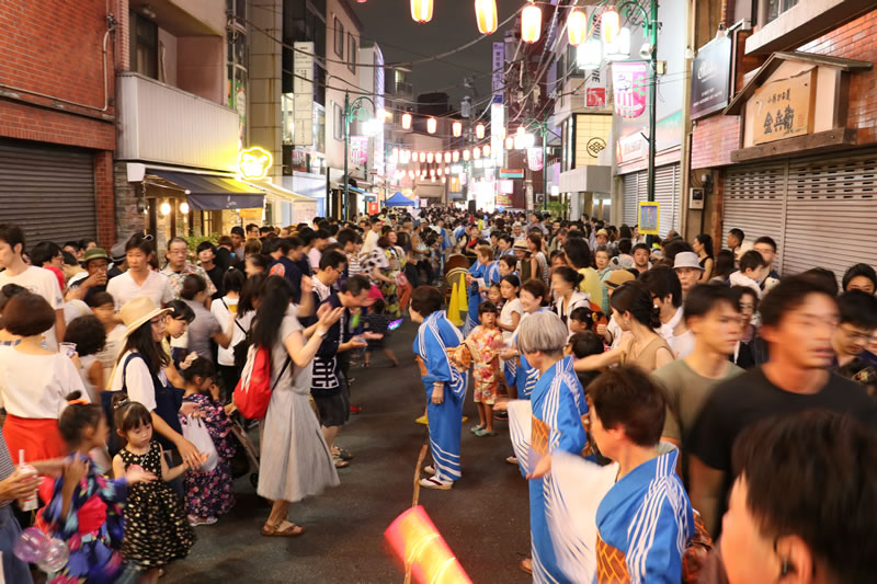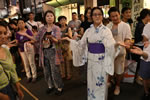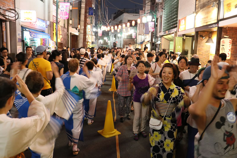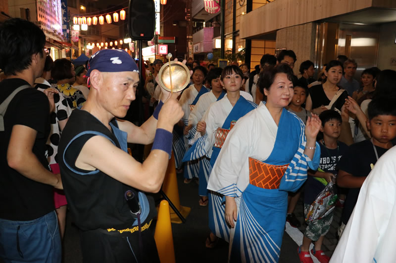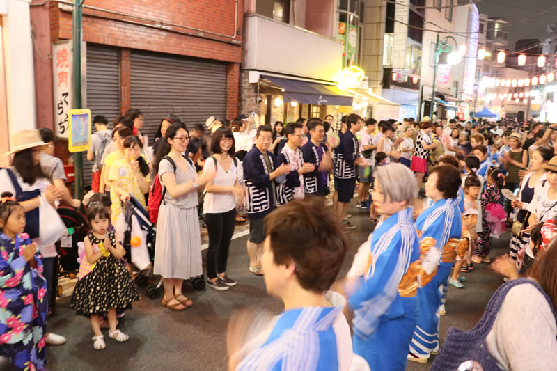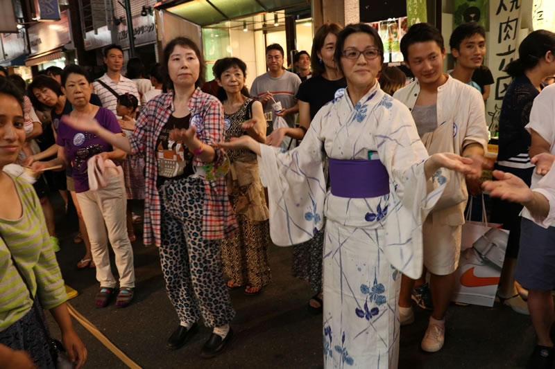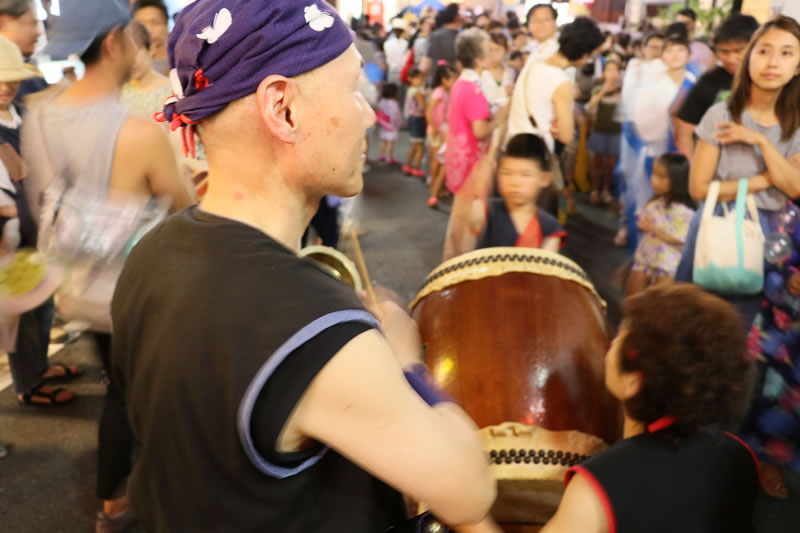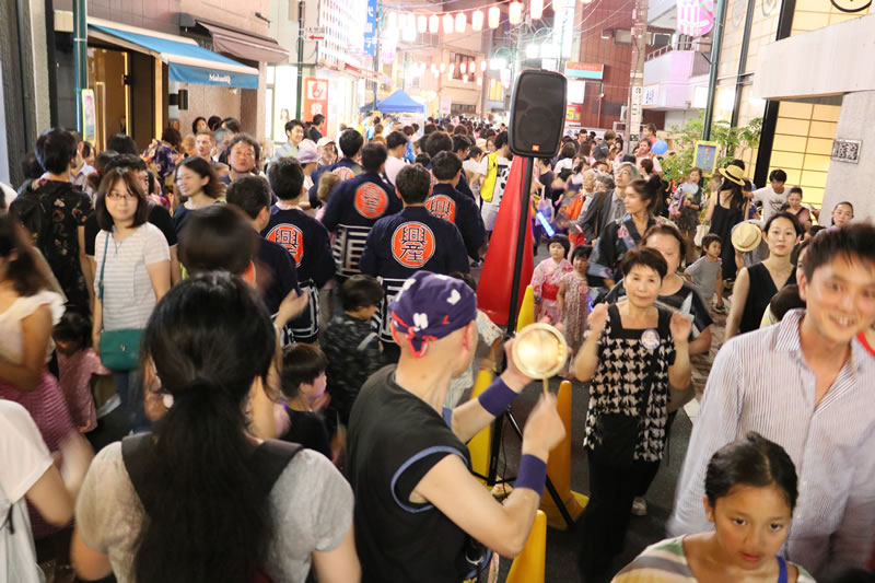 地元の人ばかりではなく、さまざまなところから集まった人々がたくさんいる為、参加の輪にも入りやすいというのが駅前商店街の盆踊り