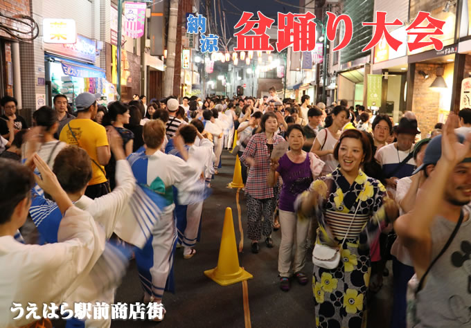 昔ながらの軽快な音楽に合わせ、輪になって踊る「えきまえ盆踊り」は夏の風物詩となっています。